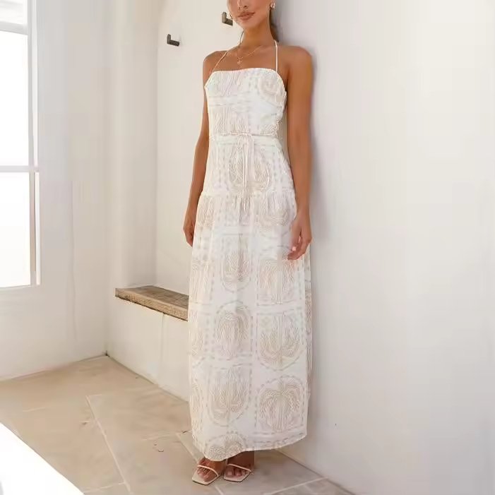Women’s Brown Hawaii Print Halter Dress with Belt